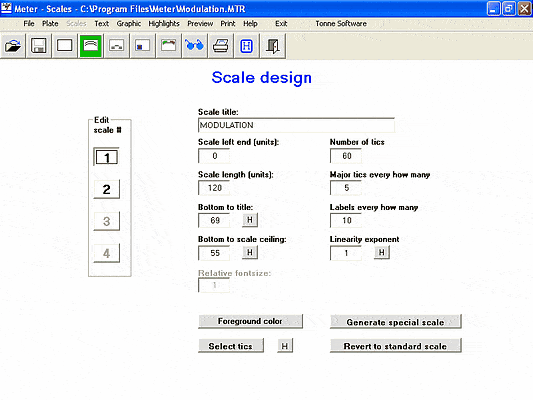 Download Jl Meter e Meter Basic — Escalas analógicas, Meterscale é um programa de desenho para permitir que você projete e imprima os fundos de escalas com qualidade profissional em sua impressora. Ele escala em qualquer medida, faz dB, vu, escalas VSWR e S-meter, e cada uma dessas rotinas tem opções apropriadas para a personalização. Ele exporta e importa para os tipos de imagens (BMP, GIF, ICO e JPG) são aceites, a largura, altura e posicionamento pode ser livremente especificados.
